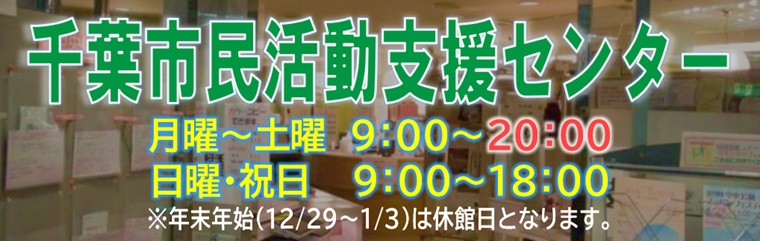 千葉市民活動支援センター(ちばさぽ)は、年末年始にかけて休館いたします。 休館日:2025 ...続きを読む -